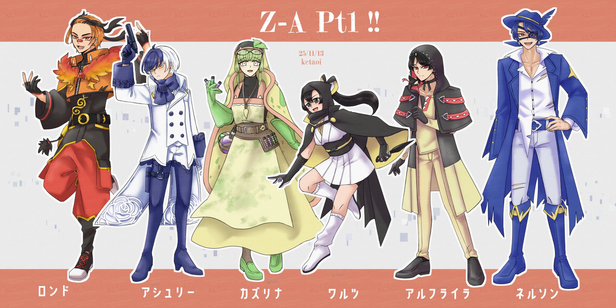 デザインですが、実際にメガシンカした場合を考えると、元のコンセプト的に悩むやつが出てくるけど、仮装ってことにしちゃえば元のコンセプトと違っても良い感じになるのでは!?ということで、メガマフォ風の魔法使い、メガガロン風の騎士王、メガゲッコ風のシーフみたいな感じで各々仮装してる感じにしました。なので髪の色や長さ、目の色、体型などは一切いじってないです。