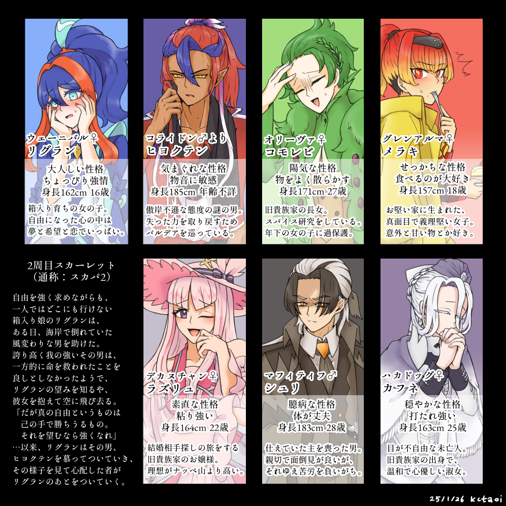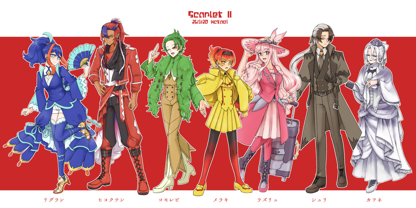 1月はトップ絵描いた後ずっと立ち絵と設定作業やってたんですけど、ありがたいことに立ち絵並べたやつドン!て出した際に沢山褒めて頂けてめちゃくちゃ嬉しかったです…!!
