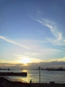 美術館から出て、カフェで一服してからもう一度海を見に行くと、夕日がすごく綺麗でした。