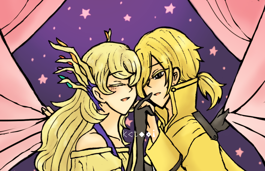 各月のトップをどのカプにするか考えてて、あまりにカントーかっぷるの出番がなさそうで戦慄したのですが、7月…七夕…出会えない二人…エレリボちゃんかな…ってけっこうスッと思いつけました。最初は川にかかってる橋みたいなの浮かべてたものの、気づいたら構図がめちゃくちゃ概念チックになってました。離れた場所に居ても、同じ夜空を見上げてるみたいなニュアンスを感じ取っていただければ幸いです。