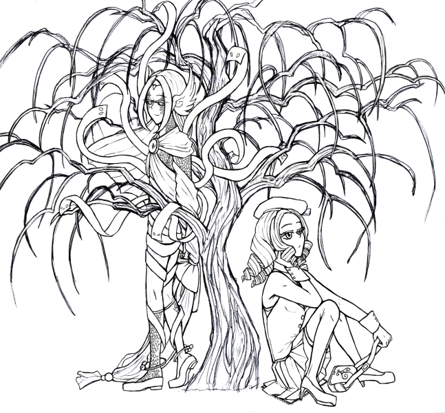 見たらわかるんですが、線画時点では花は描いてない状態でした。完成版で咲いている花は後から描き足したのですが、フォトショのコピースタンプツール神かと思いました…すげえ…。