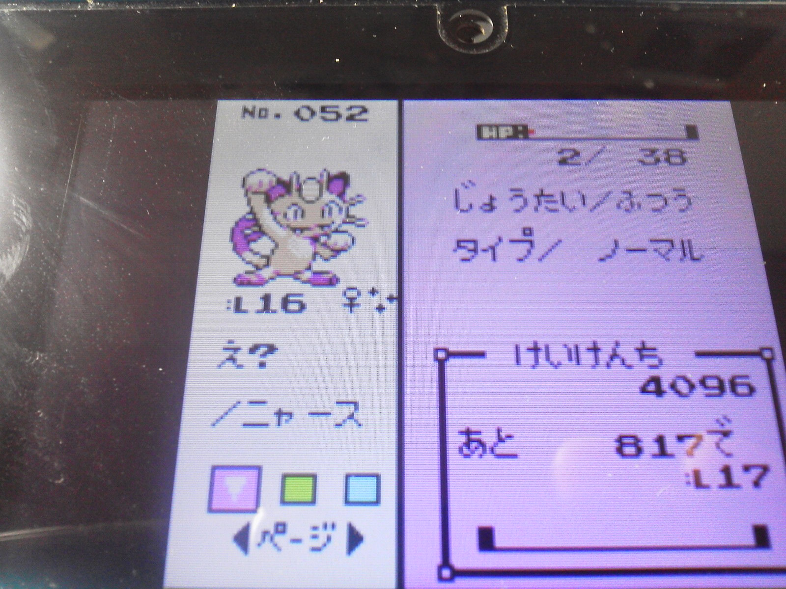 私の方は、まあ自分でやってるんで(アカネに二回敗北したりしながら)特に面白味もなく進んでいたんですが、あるポケモンをパーティ入りさせようかと思って草むらをうろついていたら、