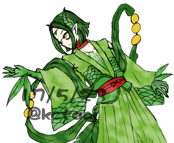 この御方はワンドロとかでは絶対に描きたくないけど、鱗とか模様とか描くのが地味に楽しいのでけっこう好きですね。