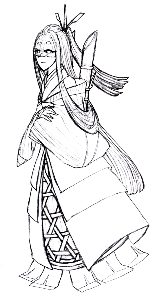 消しゴム跡を消したり、線を消したり足したりして、線画を整えたところ。