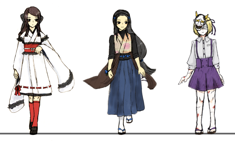 あおいちゃんの両脇は名義上の審神者と元審神者であって、厳密には審神者では無いんですけど、まあやっぱり描かないといけない気がしたのでこの子らも描いた。