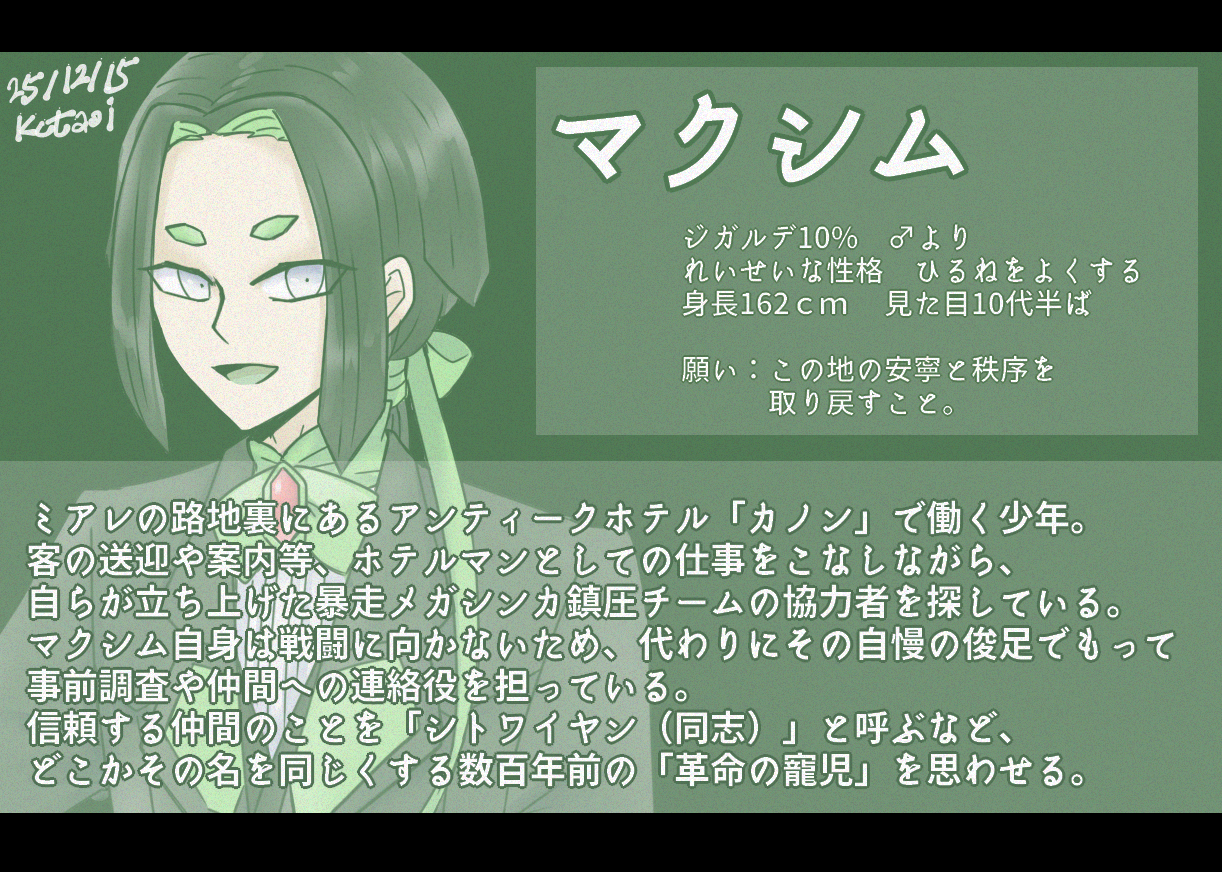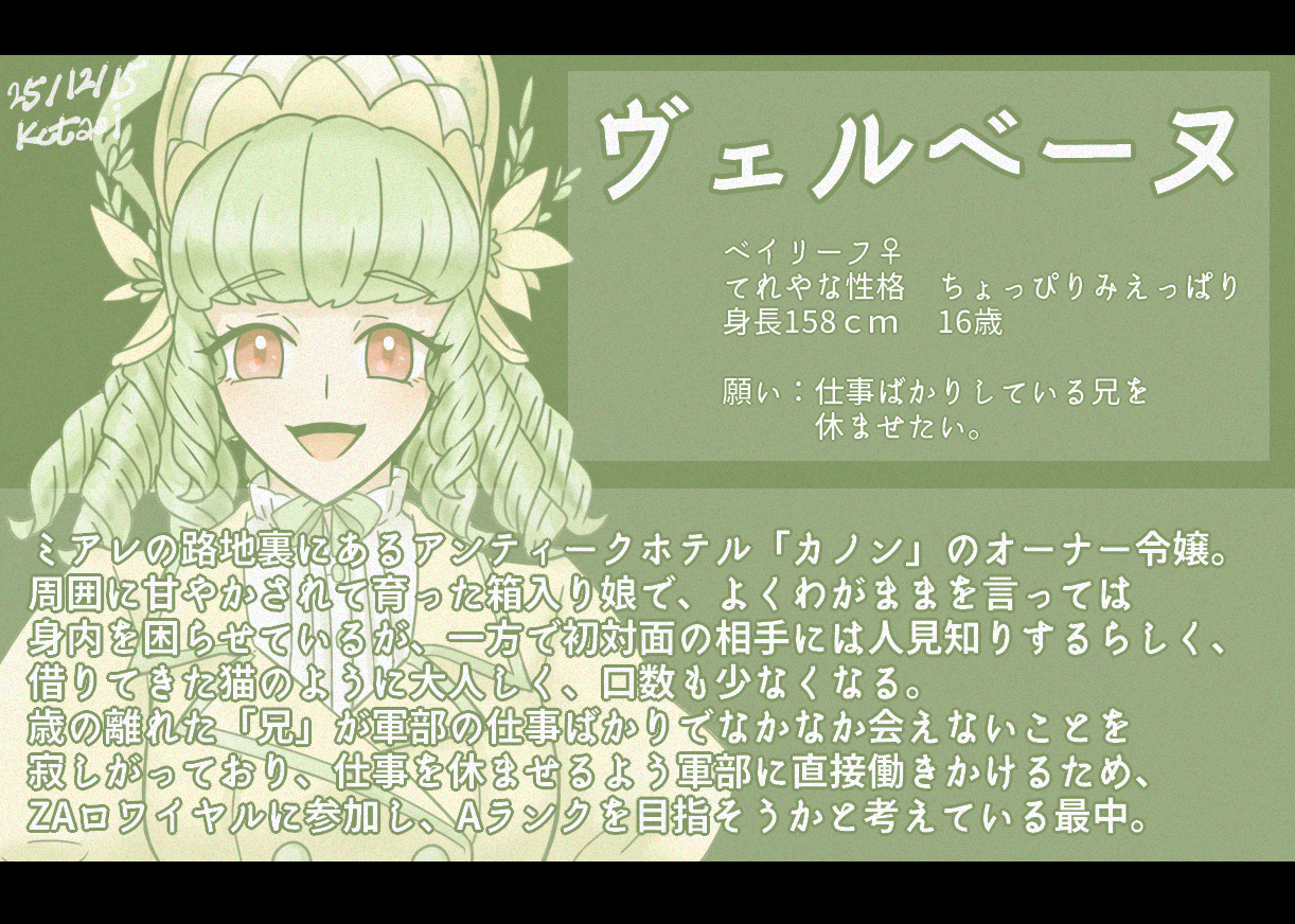 しかしやってることがリグランちゃん(スカーレット2周目のウェニ)と同じだな…3周目はほんとにあれ以降手をつけていないのですが、ここまで出したZA勢全員の設定出した頃にでも始められたらいいな~っと思っています。すでにパもけっこう決めていて…自由枠がほぼない…そんな…!!!